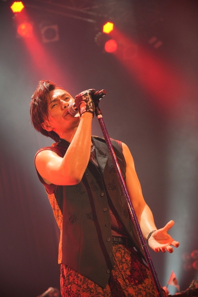 ステージの照明が落ち、場内は一瞬静寂に包まれた。次の瞬間、加藤和樹がバンドメンバーとともに登場し、会場は歓声に包まれ、オープニングから全開熱唱!
