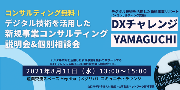 8/11(水)に、デジタル技術を活用した新規事業の事例や「DXチャレンジYAMAGUCHI」の概要を説明する説明会と個別相談会を開催します。