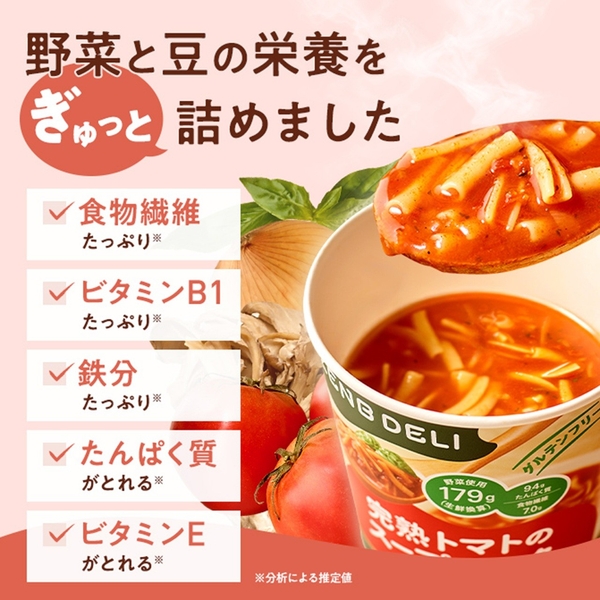 お湯を注いで3分で完成するので、忙しい時のランチや、遅く帰った日の夕食、手間をかけたくない日の食事、職場での食事など様々な場面で食べられます。これからの季節においしくヘルシーに温活※5したい、カロリーや脂質をコントロールしたい、ダイエット中でもしっかり栄養をとりたい※1、手軽にグルテンフリーやプラントベースの食生活を実践したい人におすすめです。