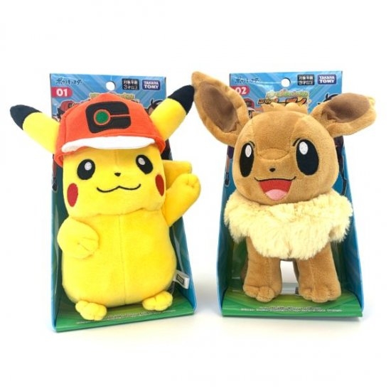 アニメ要素追加の”お子様も喜ぶ”サトシのピカチュウとコハルのイーブイがやってきた!サトシの帽子は外せてイーブイのしっぽはスゴイボリュームのぬいぐるみ。