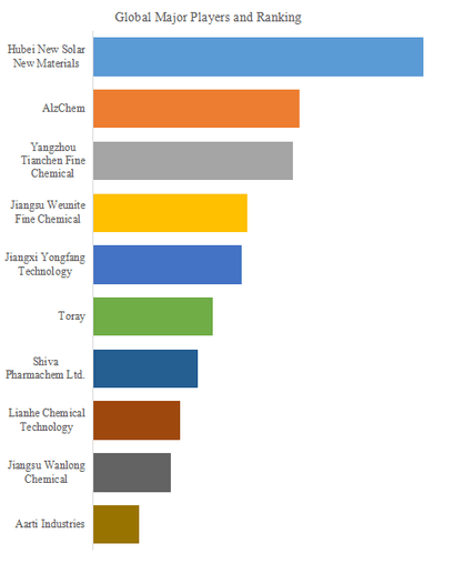 本市場は、参入障壁が比較的高く、製造技術・設備投資・法規制対応の面で一定の資本力とノウハウを要する。2024年時点において、グローバルトップ3企業(Hubei New Solar New Materials、AlzChem、Yangzhou Tianchen Fine Chemical)が約32.0%の売上シェアを占めており、業界構造としては中堅企業による寡占傾向が見られる。特に、中国メーカーの成長が著しく、地理的コスト競争力を背景に欧米市場への供給を拡大している。一方で、欧州系企業は高純度品・特殊グレードでの差別化に注力しており、用途特化型の開発戦略が進行している。また、製品が高度なカスタマイズや後工程対応を必要とすることから、顧客ごとに設計された製造プロセスと一貫した品質保証体制が、企業間競争の成否を分ける鍵となっている。