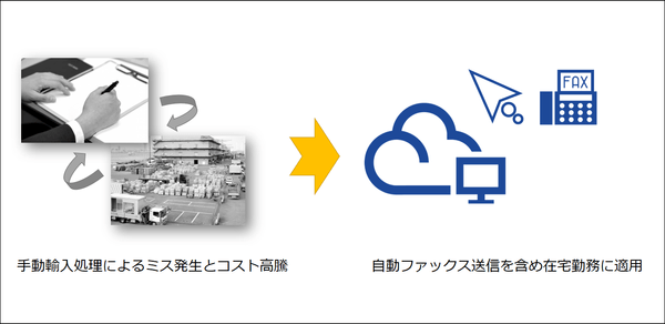 輸出者から輸入審査に必要な書類を受け取り、「ボタン押下」でクラウドERPにアップロード可能し、在宅勤務の全社メンバーに共有されます。