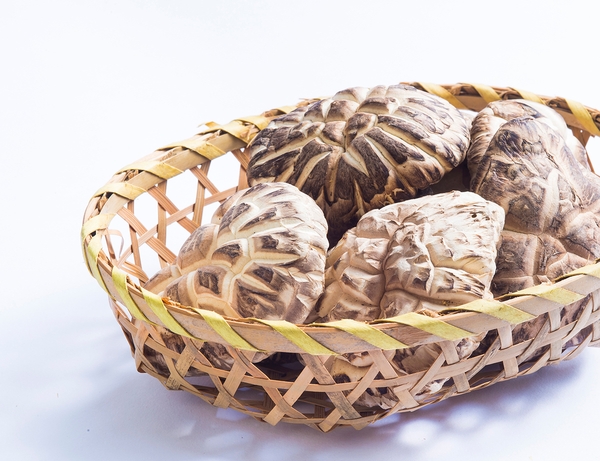 花どんこは乾しいたけの中でも最上級品で、その形は傘が白く割れており、気温・湿度など、天候の条件が揃わないと出来ない、希少価値の高い乾しいたけです。大自然の恵みが奇跡的に生み出した、造形美と深い味わいとうま味を蓄えています。