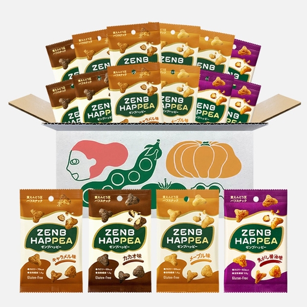 おいしくカラダにいいZENBを日常の“おやつ時間”から気軽に体験してほしいという想いから「ZENBハッピー」を開発しました。商品名の「HAPPEA(ハッピー)」には、いつでも気兼ねなくおやつを食べられる“幸せ(HAPPY)”と、“黄えんどう豆(YELLOW PEA)”からできた新しいおやつという意味を込めています。