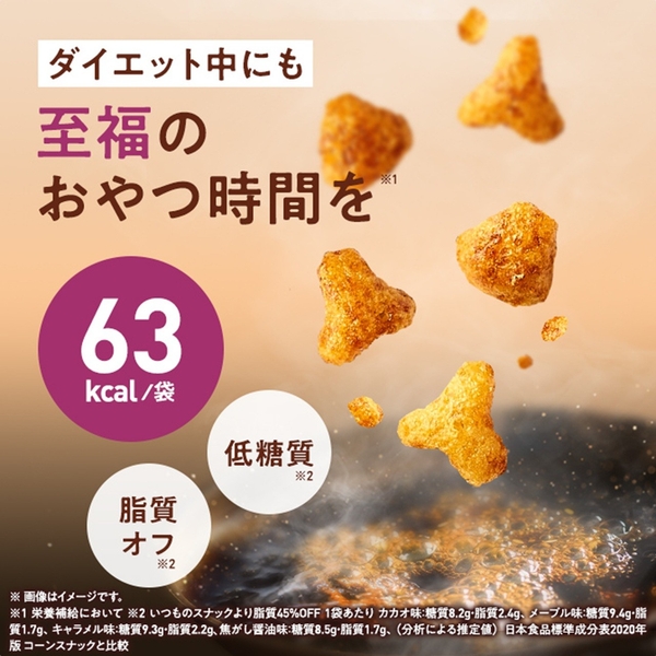 ※2 1食当たり焦がし醤油味:糖質8.5g・脂質1.7g分析による推定値。日本食品標準成分表2020年版 コーンスナックと比較して
