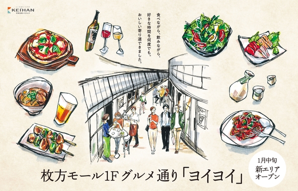 株式会社京阪流通システムズ(本社:大阪市中央区、代表取締役社長:松下靖)が運営する、京阪電車・枚方市駅前の商業施設・枚方モールの1階に、2025年1月から2月にかけて、新店5店舗が順次オープンし、グルメの新エリア「ヨイヨイ」が誕生いたします。