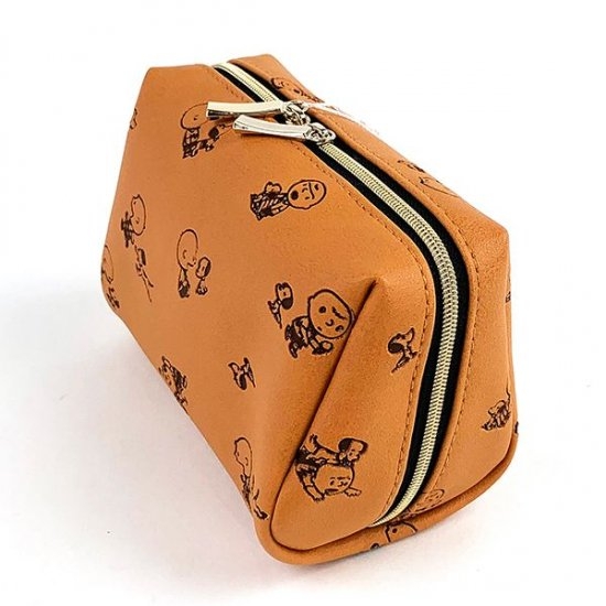 エンボス加工がリッチな雰囲気の、スクエアポーチです。初期のスヌーピーやチャーリーブラウンのデザインがキュートで、キャメルカラーもオシャレ♪