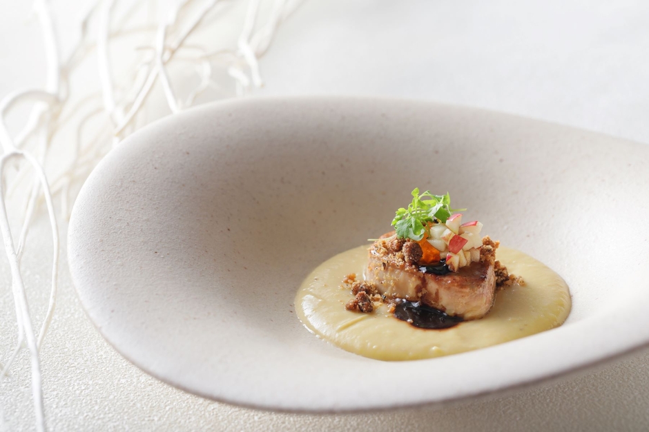 フレンチレストラン「グラマシースイート」では「フランスのホワイトクリスマス」がテーマ。オマール海老を使った冷前菜やフォアグラのポアレなど王道のフレンチ料理をお楽しみいただけます。