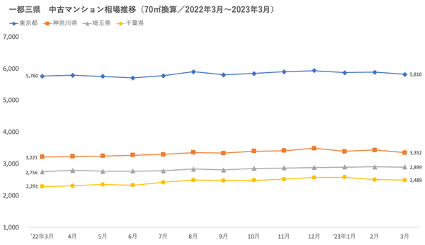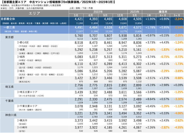 「マンションレビュー」2023年3月 全国主要エリア/47都道府県 中古マンション相場推移を発表