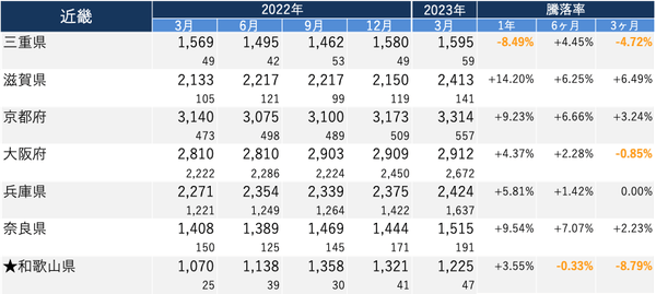 ※2023年3月の件数が50件未満の県については、算出根拠となるデータ数が少ないため★をつけて掲載。