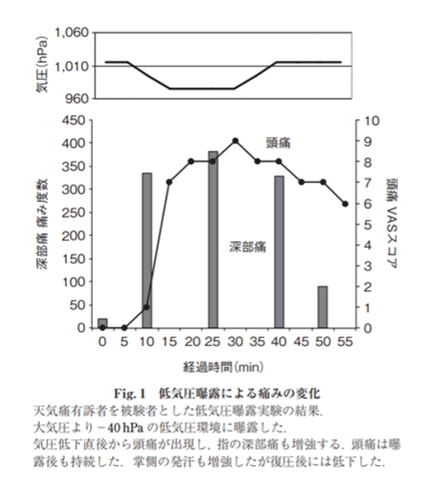 名古屋大学動物実験支援センターでの佐藤純氏の研究では、気圧、気温のわずかな変化が、人々の様々な慢性痛に影響を与えていると調査データも発表されています。
