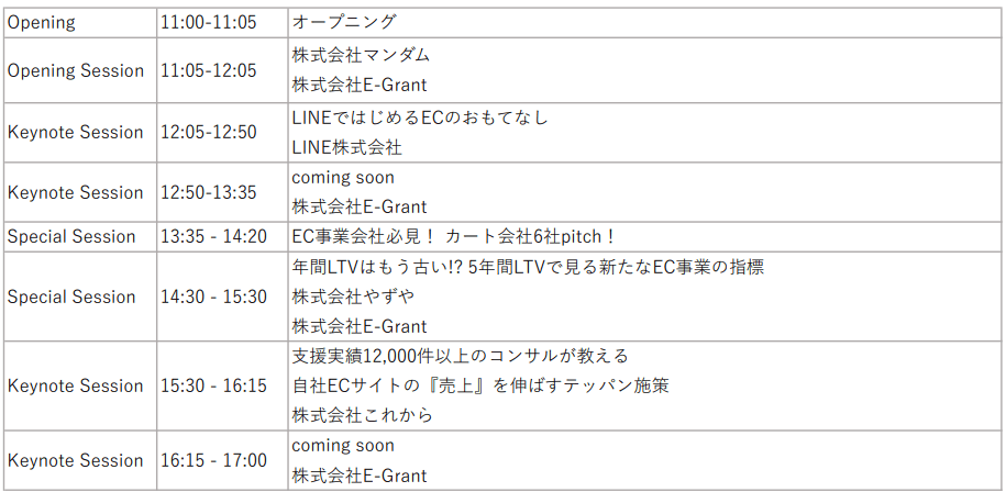今回もEC・CRMに纏わる様々な企業様にご登壇いただきますのでぜひご視聴くださいませ。