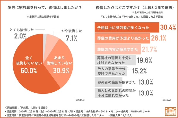 株式会社ディライト(所在地:東京都新宿区、代表取締役:高橋 亮)は、家族葬の喪主経験者を含む20〜70代の男女を対象に「家族葬」に関する調査を行いました。