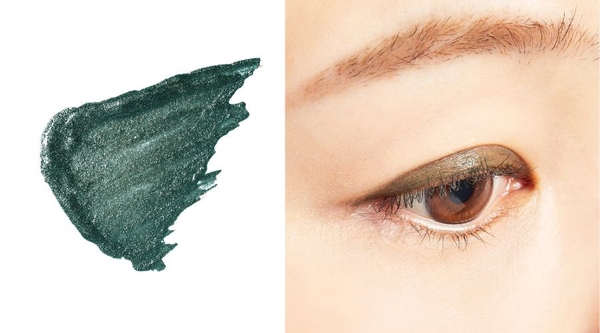深みのあるディープグリーンと透け感のあるパールの輝きで、単色でも華やかな印象に。トレンド感を取り入れた大人の目元を演出。