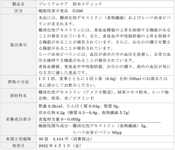 4つの機能を兼ね備えた機能性表示食品「プレミアムケア 粉末スティック」新発売