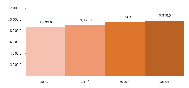 一人当たりの米国医療費、(USD)、2013ー2016年