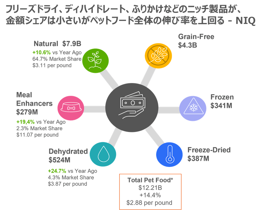 USペット市場では「ディハイドレート」、「フリーズドライ」、「エアドライ」といった ユニークな保存技術のペットフードが22年には金額ベースで24.7%増加 - アメリカにおけるペット関連消費調査より -