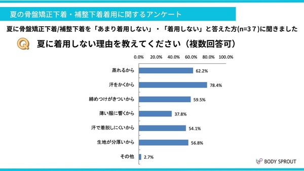 夏に骨盤矯正下着/補整下着を「あまり着用しない」・「着用しない」と答えた方にその理由をお聞きしました。