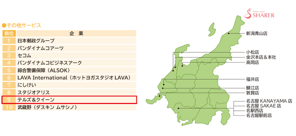 マイナビが実施した「2022年卒版 就職企業人気ランキング」で全国9位(その他サービス部門)にランクインしたのが、石川県に本社を置くエステサロン「シェアラ」を運営するテルズ&クイーン。