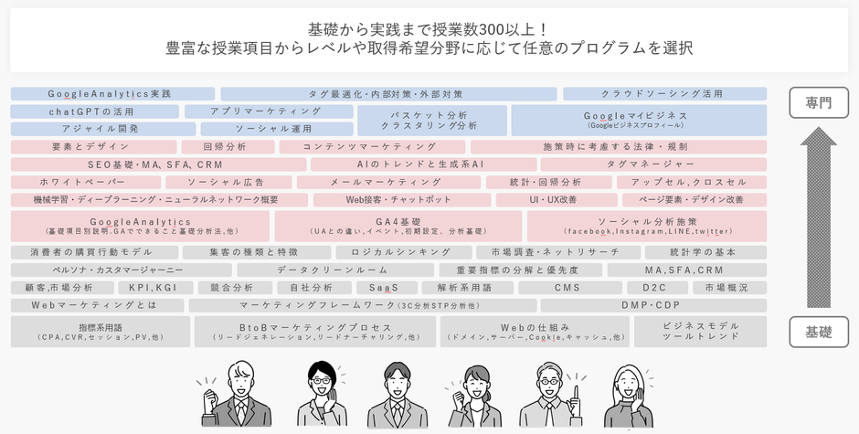 DXやデジタルマーケティングの実践に関わる専門スタッフがカリキュラム化しています。