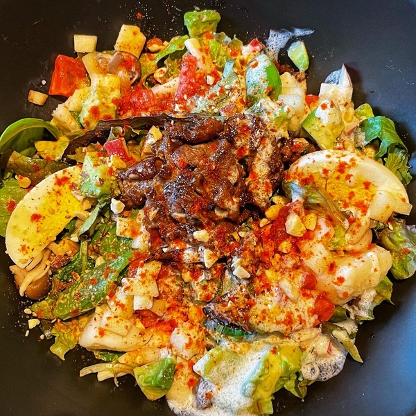 トッピングでビーフを選ぶとガッツリ濃い味付けでサラダがむしゃむしゃ進みます。