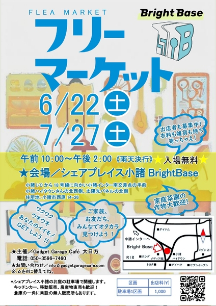 シェアプレイス小諸ブライトベースは、2024年6月22日(土)に、フリーマーケットを催します。