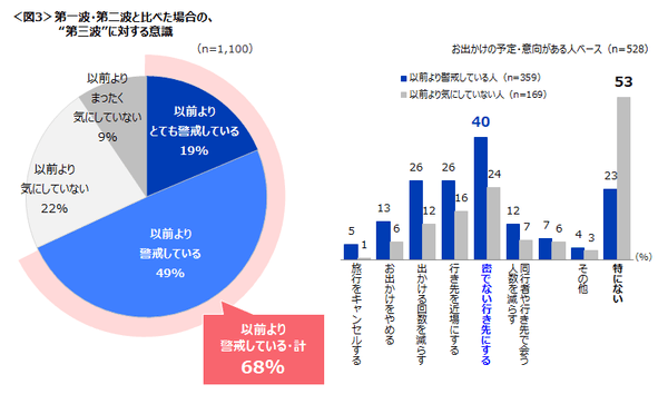 警戒している人では、3連休のお出かけ先を「密でない行き先にする」など、考えている様子。