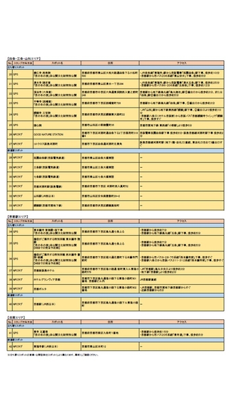 スポットには立ち寄りスポット、鉄道駅スポットがあります。立ち寄りスポット、鉄道駅スポットの一覧は別紙をご確認ください。