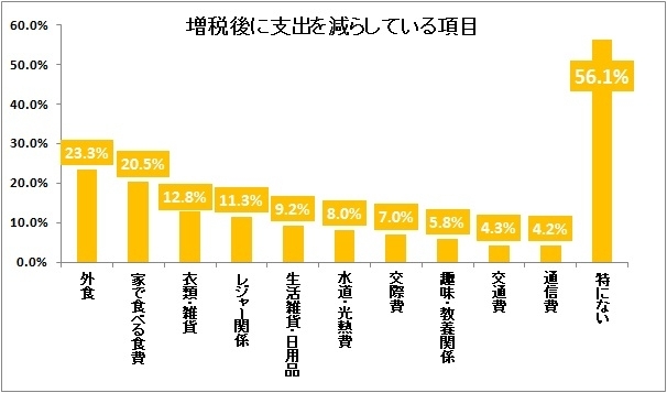 アンケートでは、増税後に支出を減らしている項目についても調査しました。