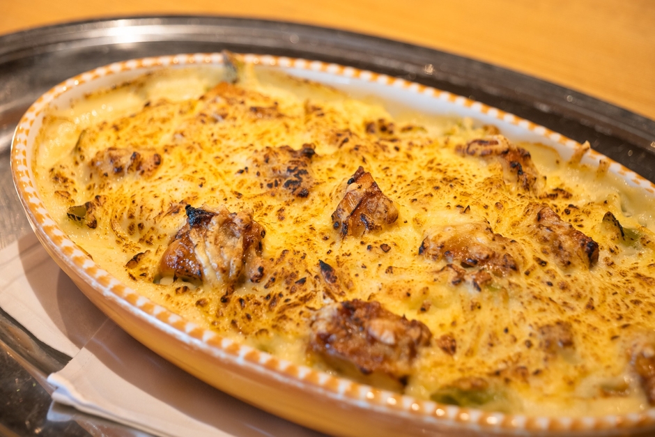 自家製ベシャメルソースのやさしいコクに、チーズの香ばしさが重なる冬の定番。とろりとしたソースと焼きたての香りが食欲を引き立てます。
