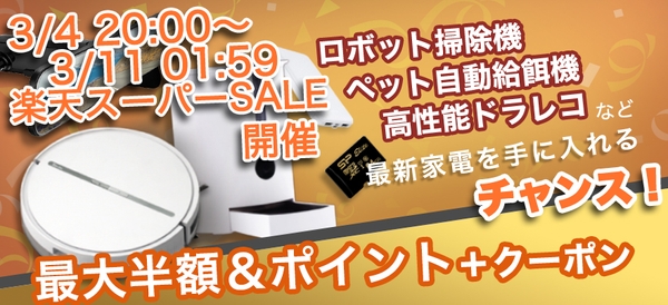【セール情報】高コスパロボット掃除機やドライブレコーダー、ペット給餌器など、家電製品が最大半額&ポイント30倍のチャンス!新生活応援セールが開催