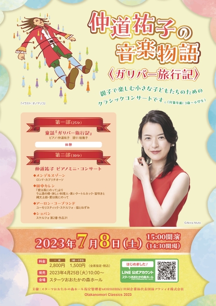 スターツおおたかの森ホール主催『仲道祐子の音楽物語〈ガリバー旅行記〉』が2023年7月8日(土)にスターツおおたかの森ホール(千葉県流山市)にて上演されます。