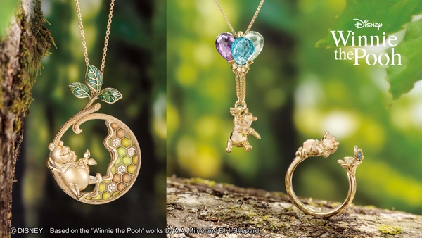このほどの新作は、ディズニーの“がんばり屋さんに、プーさんを。 プーさんに甘えよう。”企画に賛同して生まれた商品です。カラーストーンや、伝統技法の七宝を用いて、愉快で温かみがある『くまのプーさん』の物語や世界観を、彩り豊かに表現しました。また、関連商品として「プーさん」が描かれたトラベルジュエリーケースを発売します。ブラウンとクリームの2色展開で、クリームはWEB限定販売・1000個の数量限定商品です。トラベルジュエリーケースは店頭では7月29日(金)に発売、WEBでは7月25日(月)に両色先行販売します。