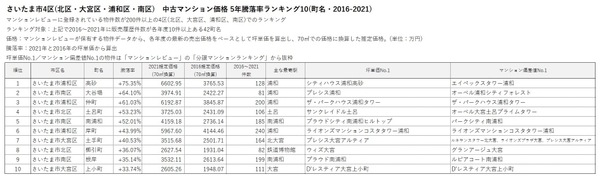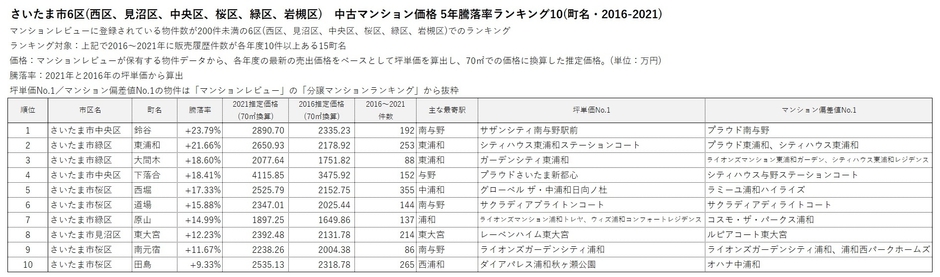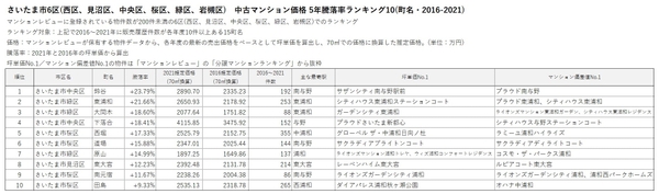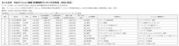 ■さいたま市 中古マンション価格 5年騰落率ランキング(2016-2021)