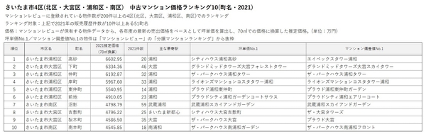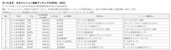 ■さいたま市 中古マンション価格ランキング(2021)