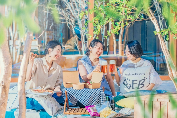 「居酒屋以上 旅未満」の体験を提供する「星野リゾート BEB5(ベブファイブ)軽井沢」では、2022年6月1日から8月31日まで、24時間、時間を気にせずビールを楽しめるビアガーデン「24 hours BEB ビアガーデン」を初開催します。軽井沢に馴染み深いクラフトビールを提供するのはもちろん、ビールとトマトジュースを組み合わせて味わうことができるなど、さまざまなビールの楽しみ方ができるイベントです。好きな時間に、好きなビールを片手に、いつもの仲間と思い思いの時間を過ごすことができます。