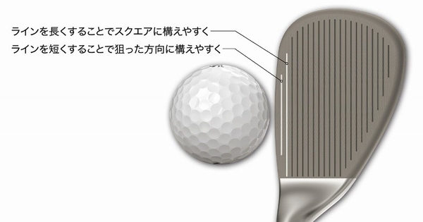 フェース下部に配した2本のショットアライメントラインにより、アドレス時にフェースをスクエアにキープしやすくなり、ショットの安定性を高めます。