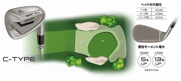 (1)C-TYPE ピンまで距離があるグリーン周りで、パター感覚でアプローチできるチッパー