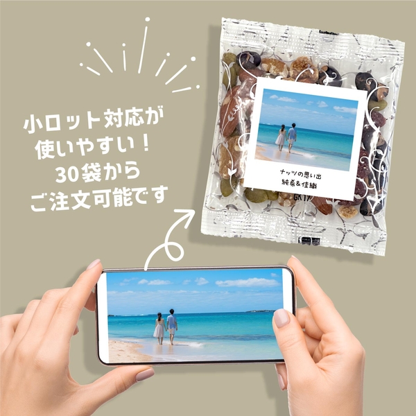 ・スマホから写真を送るだけで作成でき、手軽にオリジナルノベルティを作りたい方におすすめ。