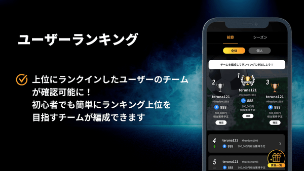 ユーザーは完全無料でサービスに参加可能で、見事選手の活躍を的中させランキング上位に輝いたユーザーはギフト券などの景品を獲得できます!