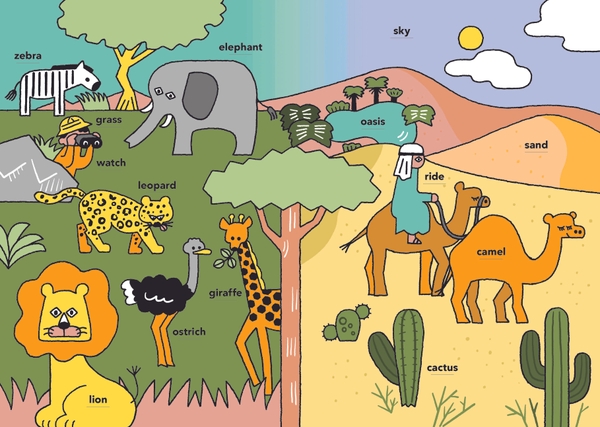 たとえば、elephant(ゾウ)という単語なら、どんなものか誰もがよく知っています。説明文にわからない単語が出てきても、すでに持っている知識やイメージから意味を推測し、無理なく理解することができます。本書では、そんな身近な単語を中心に取り上げました。