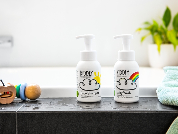 肌の弱いお子さんにも安心して毎日使える、オーガニックの世界統一基準ECOCERT・COSMOS認定原料のエンドウ豆から抽出した天然ピープロテインを使用したKiddly。シャンプー&ボディーソープ各1本のトライアルセットを¥2,100(送料込み)で特別先行販売。