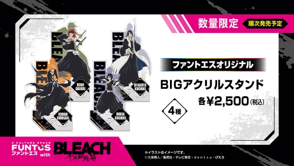 描き下ろしイラストを使用したBIGアクリルスタンドです。黒崎一護、朽木ルキア、朽木白哉、阿散井恋次の4種展開。