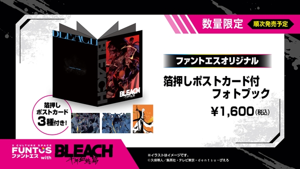 『BLEACH 千年血戦篇』のイラストを使用した箔押しポストカード付フォトブックです。全8ページ、ポストカードは3種付となります。