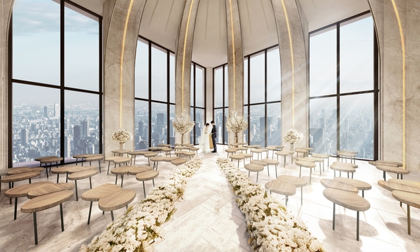 婚礼など多目的に使用できるイベントスペースが誕生します。天井から大樹のように全方位に広がるアーチと、エリア最高層から大阪の街を見渡す絶景が特徴の美的空間。ミシュランシェフ監修の料理と様々なジャンルのアーティスト、そしてそこに集うすべての人で織りなされる心の底から感動する体験をプロデュースします。