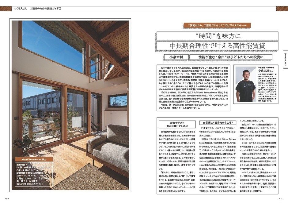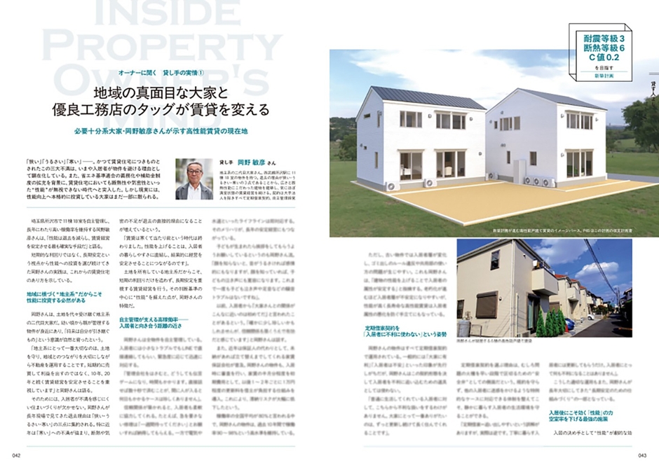 戸建て住宅では当たり前になりつつある高性能化ですが、その価値がすでに賃貸住宅(戸建て・集合)でも実現できることは、まだ広く知られていません。この新しい選択肢をもっと多くの人に知ってもらいたい、そしてオーナーにも地域の工務店にも事業として「高性能賃貸住宅」の所有と建築を視野に入れてほしいという思いで、1冊のムック本にまとめました。