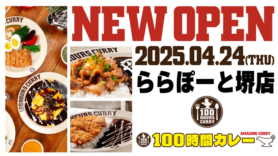 全国約50店舗展開しているカレー専門店「100時間カレー」を運営する株式会社アークス(本社:東京都豊島区、代表取締役:米田周平)は2025年4月24日(木)100時間カレーららぽーと堺店を出店することをお知らせいたします。