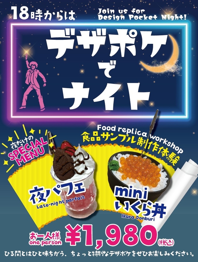 ライトアップされた店内で行われた夜限定の食品サンプル制作体験は、