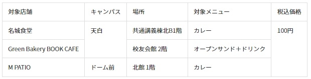 この「100円朝食」は280円分のメニューを100円で提供し、差額は寄付金(名城大学教育振興資金)から補填されています。ご協力のほど、よろしくお願いいたします。