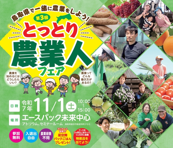 「農業で働く」という選択肢を皆さんにもっと身近に感じていただける機会です。鳥取県の農業を知り、新たな一歩を踏み出すきっかけとして、ぜひご参加ください!